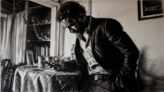 The fluorescent corridors, the faint smell of disinfectant, the slow shuffle of other patients, these clung to me as I pushed open the door of my flat, expecting emptiness, and instead found him. He was already there, seated at the kitchen table with the composure of someone who had always belonged to the room, polite enough to nod but not to smile, his black garments resembling less the clothing of a man than the ceremonial costume of someone convinced that this world, in all its damp heat and crumbling plaster, was merely a stage on which he had been waiting for me to arrive.
